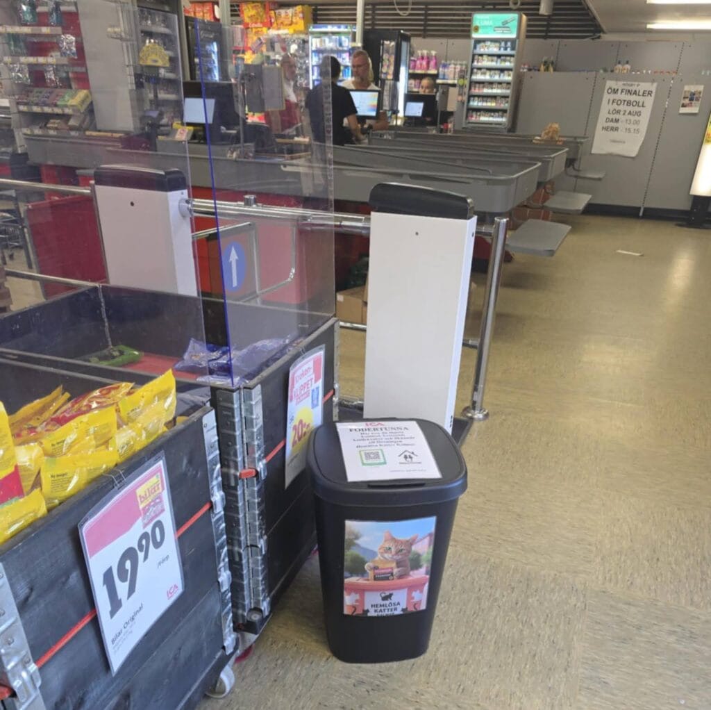 Här kan du lämna kattmat, kattsand, kattleksaker och liknande