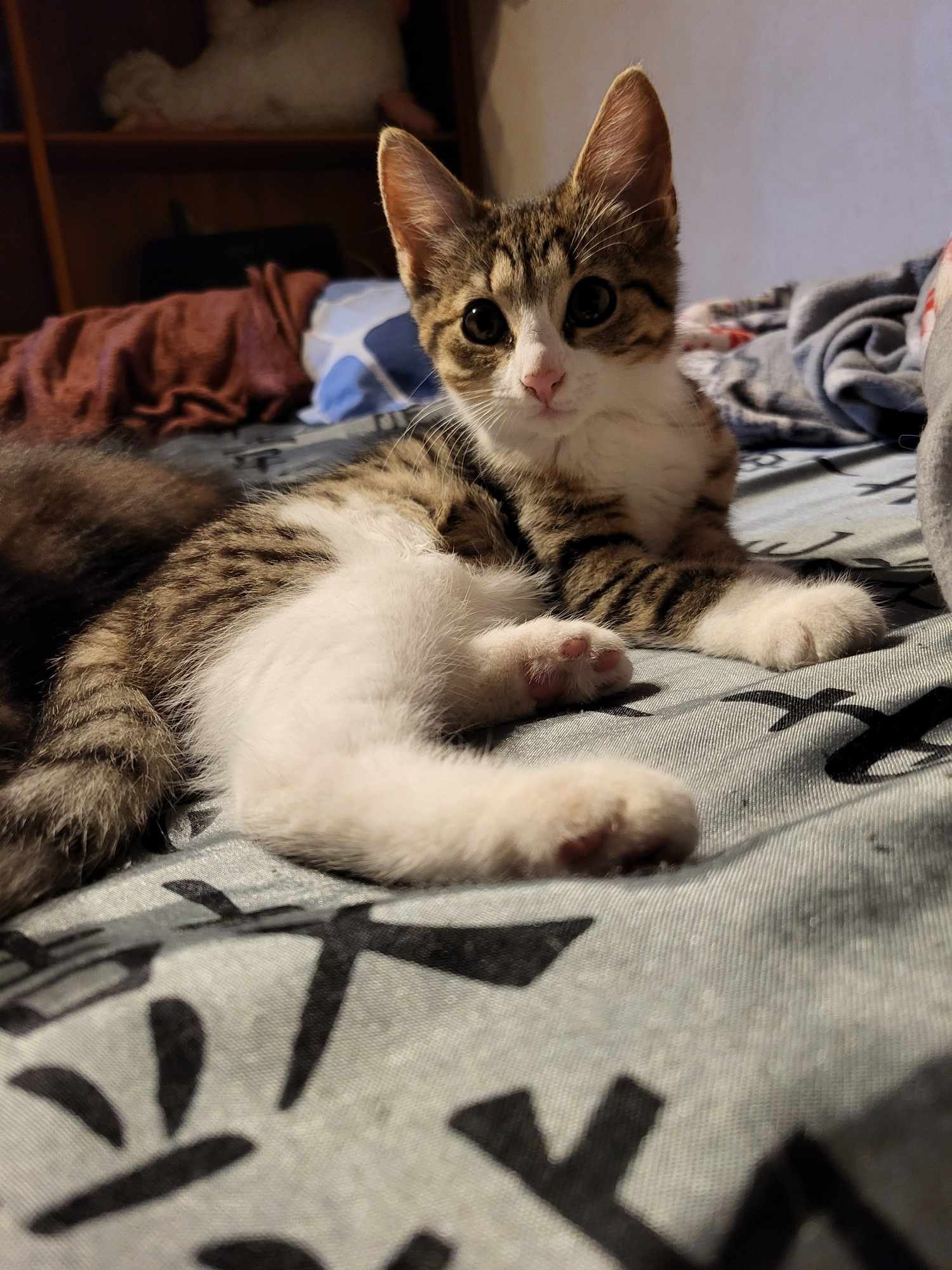 Vi vill att kattungar och ungkatter upp till ett års ålder ska ha en annan katt i sitt hem när de flyttar då de utvecklas så mycket i den åldern och det finns så mycket en artfrände kan lära lillkissen som vi människor inte kan. Man måste inte adoptera två kattungar på en gång utan har man redan en vuxen katt hemma funkar det också jättebra.