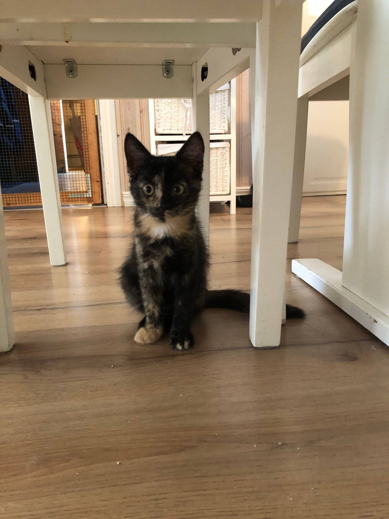 Bettan har vuxit upp med fyra kullsyskon och sin mamma. Hon verkar så trygg och förnöjd. Men visst kan hon busa! Även med andra katter i stödhemmet. Hon är chippad och vaccinerad med dos 1. Hon kommer att få dos 2 i vecka 43.