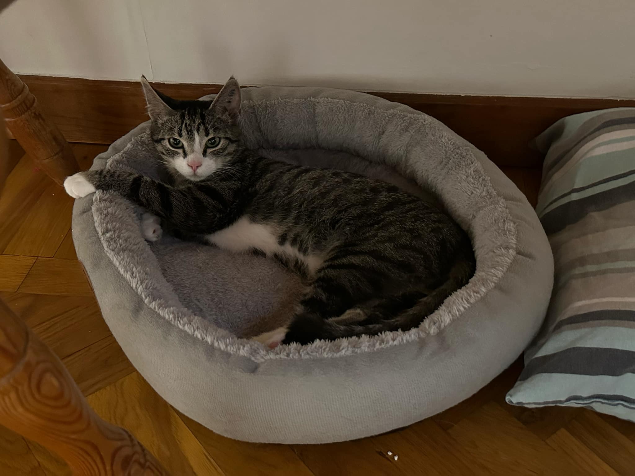 Bozo älskar o leka o busa. Väldigt nyfiken kille och ska vara med och kolla vad man gör hela tiden. Otroligt gullig o gosig när stödhemmets matte o husse är nära honom. Han vill verkligen mer än han vågar. Dock är han klappbar. Vill ha en kattkompis. Vill gärna flytta med syskonet Houndini. Rumsren. Van vid andra katter o större barn.