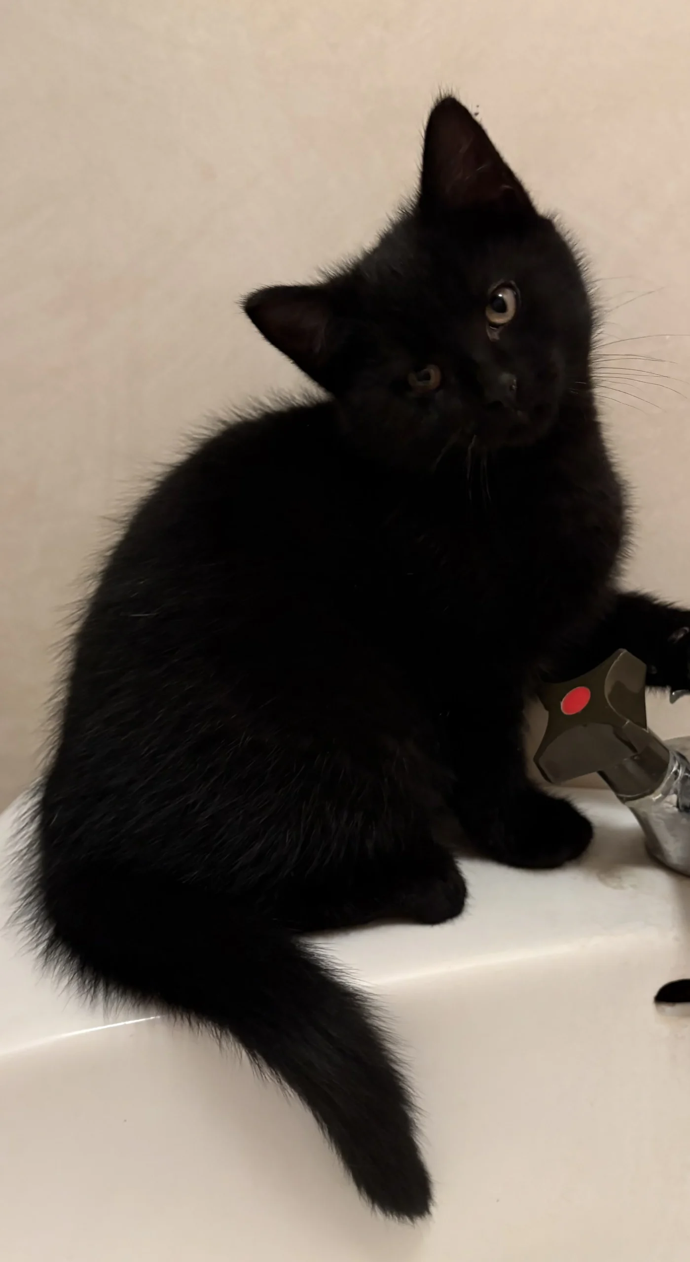 När han inte gosar eller äter, leker han nyfiket med allt som prasslar, rullar eller rör sig. Han är lekfull, aktiv och full av livsglädje! Det bästa av allt: han visar stort intresse för både andra katter och hundar, och kan passa bra i ett hem med andra djur med rätt introduktion.