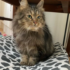 Dino är en väldigt vacker katt o är van vid andra katter, men kan blomma ut om hon blir ensamkatt e ha en snäll kattkompis. Kan även funka med en snäll hund. Gärna något äldre barn som vill gosa med henne. Hon har gjort stora framsteg senaste tiden. Det går att klappa henne när hon äter. Hon behöver bara lite mer tid så kommer hon o blomma ut ändå mer. Rumsren. Hon är lite överviktig o behöver äta bantningsfoder.