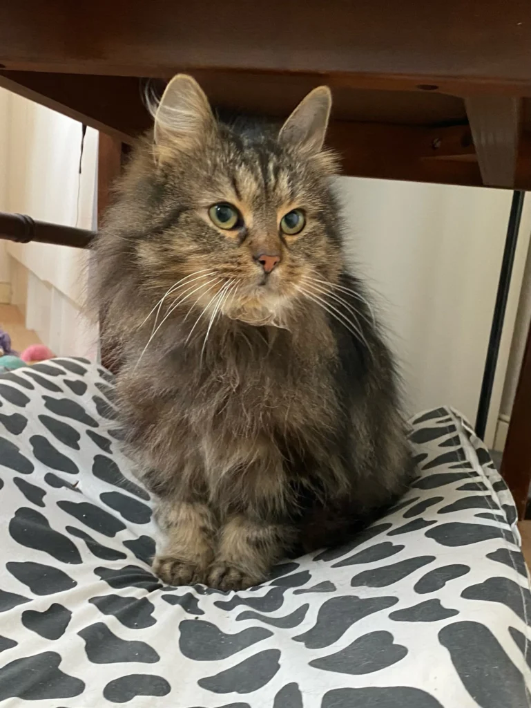 Dino är en väldigt vacker katt o är van vid andra katter, men kan blomma ut om hon blir ensamkatt e ha en snäll kattkompis. Kan även funka med en snäll hund. Gärna något äldre barn som vill gosa med henne. Hon har gjort stora framsteg senaste tiden. Det går att klappa henne när hon äter. Hon behöver bara lite mer tid så kommer hon o blomma ut ändå mer. Rumsren. Hon är lite överviktig o behöver äta bantningsfoder.