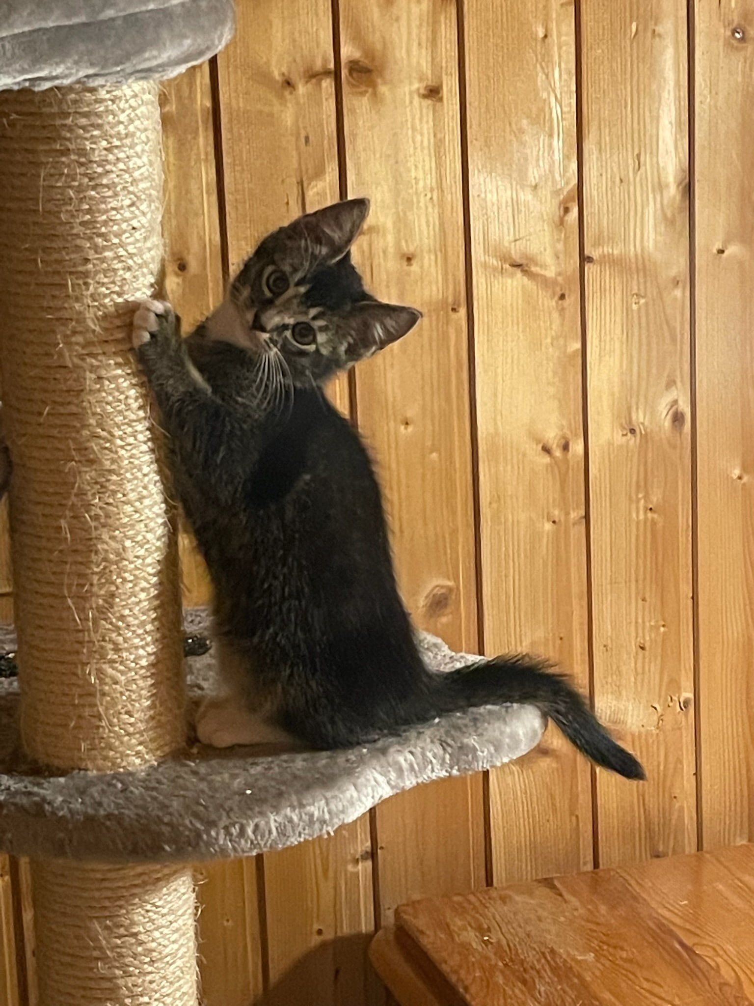 Vi vill att kattungar och ungkatter upp till ett års ålder ska ha en annan katt i sitt hem när de flyttar då de utvecklas så mycket i den åldern och det finns så mycket en artfrände kan lära lillkissen som vi människor inte kan. Man måste inte adoptera två kattungar på en gång utan har man redan en vuxen katt hemma funkar det också jättebra.