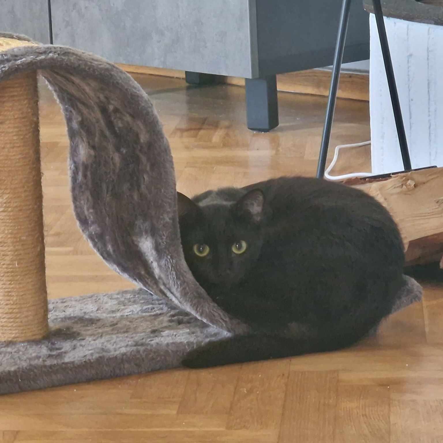 En väldigt försiktig liten tjej på 8 månader som behöver ett lugnt hem, där hon kan känna sig som nummer ett med massor av kärlek och som tar allt i hennes takt. Hon älskar att gosa, men med för hastiga rörelser så går hon gärna iväg. Gillar inte små barn men äldre barn/tonåringar går bra om dom är lugna och stillsamma. Hundar är ingen favorit, så ett hem utan hund är att föredra. Hon önskar att få flytta med sitt syskon Rauka då dom skapar trygghet i varandra och är alltid tillsammans.