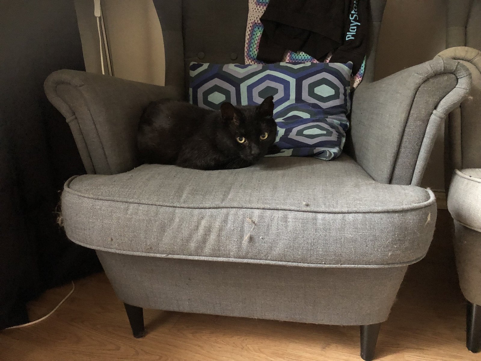Frasse hittades i en by på norra Öland tidigt i våras. Då var det kallt och Frasse var helt vild. Efter en relativt lång tid i stödhemmet har det gått framåt litegrann. Man får komma ganska nära. Han spinner när man pratar med honom, men det är en bit kvar tills han tillåter beröring och gos. Han skulle nå de stegen snabbare om han får mer fokus från tvåbeningar. I stödhemmet finns det allt för många busiga och lekfulla katter. Det tycker han inte riktigt om.