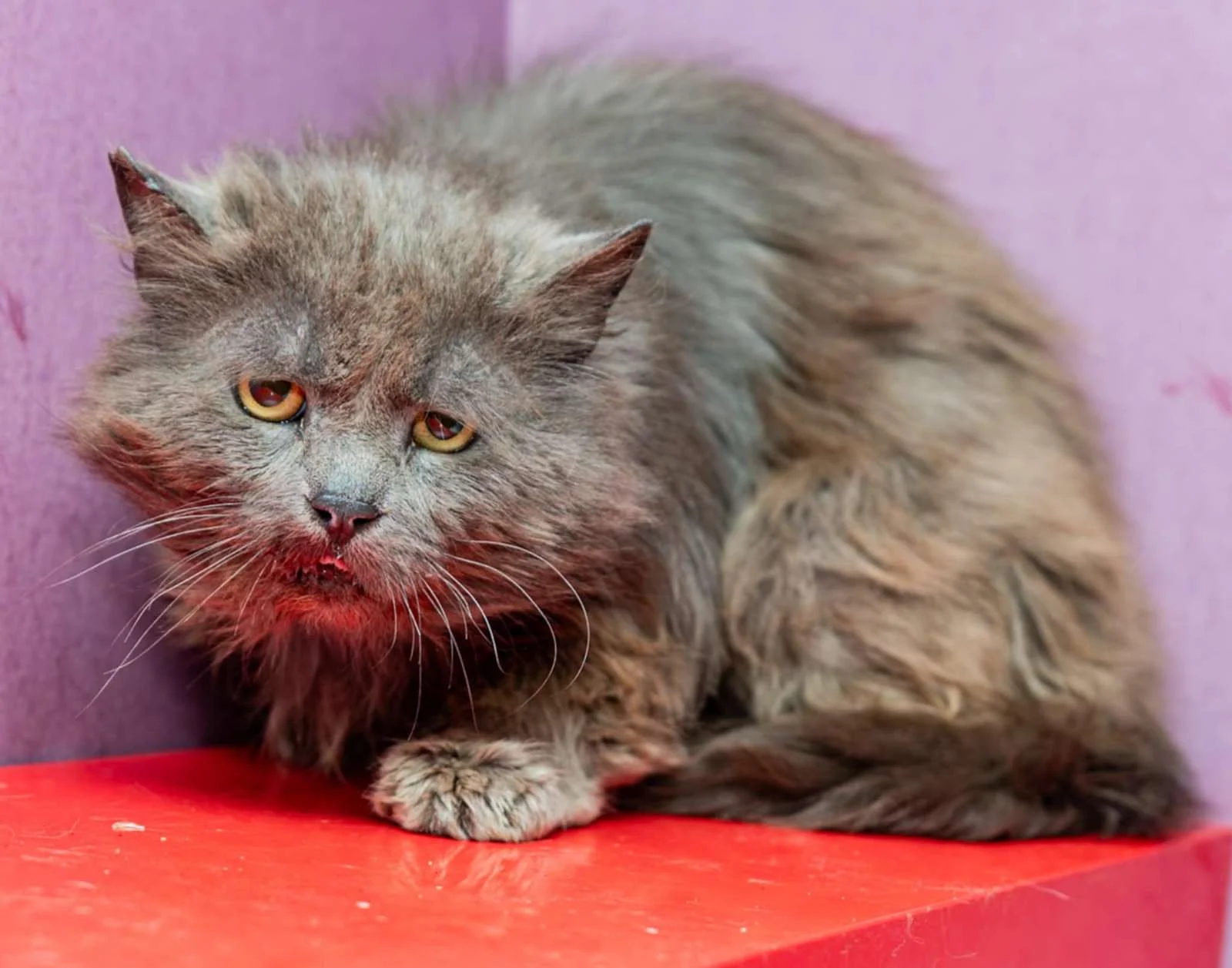 Han har sedan han fångades in gått igenom en otroligt förändring i utseendet, från sliten och trött till en vacker kille som är stolt över sin yviga svans.