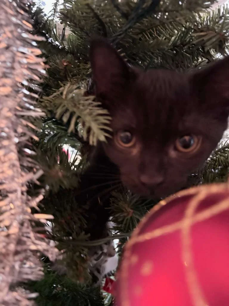 Leah är en riktig liten busfröken som gillar att klättra i julgranen och även i kattställningen. Hon är lite rädd men det tror jag smittar av sig från mamma. Hon gillar även att leka med leksaker som hon springer med i munnen som ett byte. Hon är ingen knäkatt men jag tror hon kan bli det om det är äldre katter runt henne. Dock gillar hon att bli klappad när hon inte är på upptåg. Rumsren.