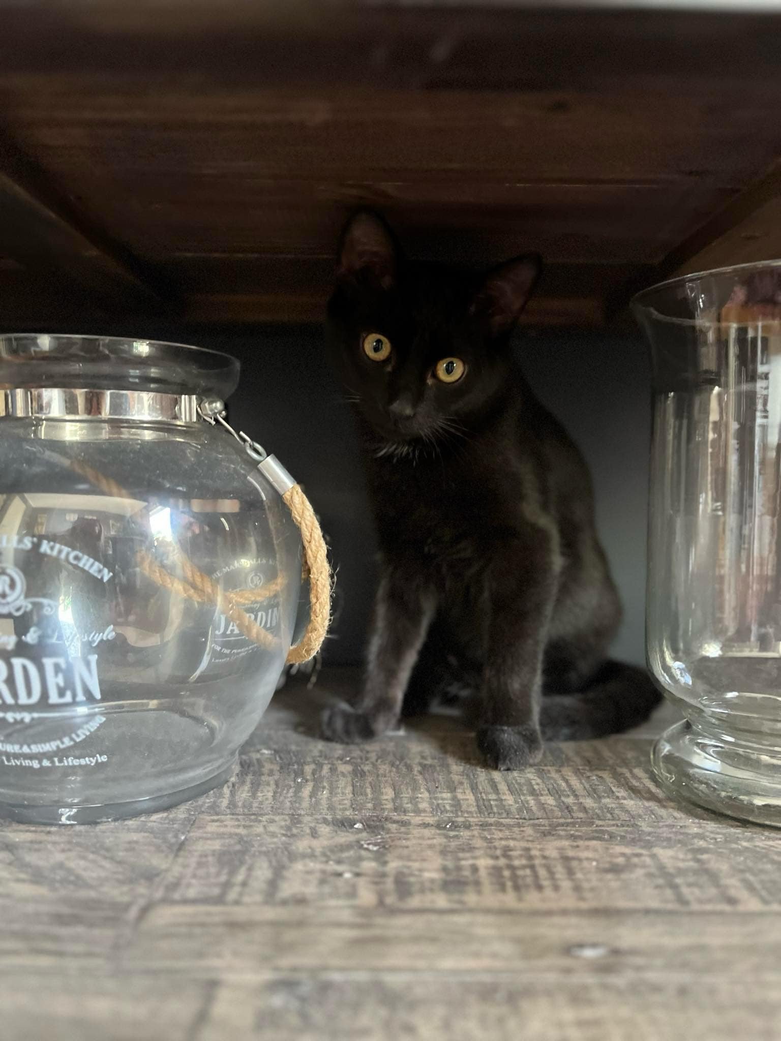 Lucifer är en pigg kattunge. Det är full fart, och han en busig kille. Han kommer fram när det är godis och äter i stödmattes hand. Han är inte helt tam, däremot kommer det gå fort när han vågar lita helt på människor