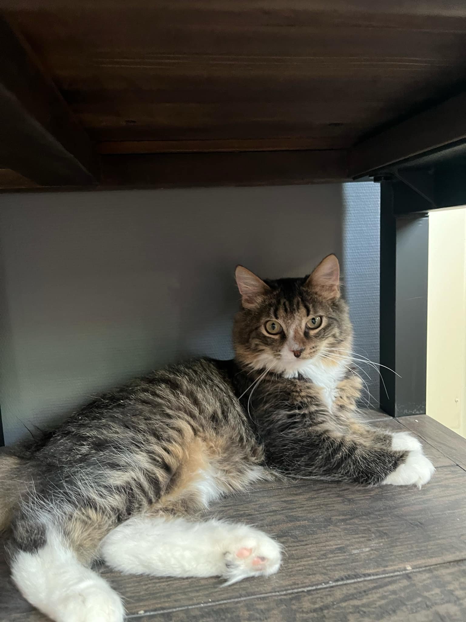 Lurvas fångades in tillsammans med syskon o mamma på en gård i norra Kalmar. Då var de skygga. I stödhemmet har han utvecklats o blivit tamare. Han är en mysig och snäll katt, och sitter gärna i soffan. Han är den lugnaste i kullen.