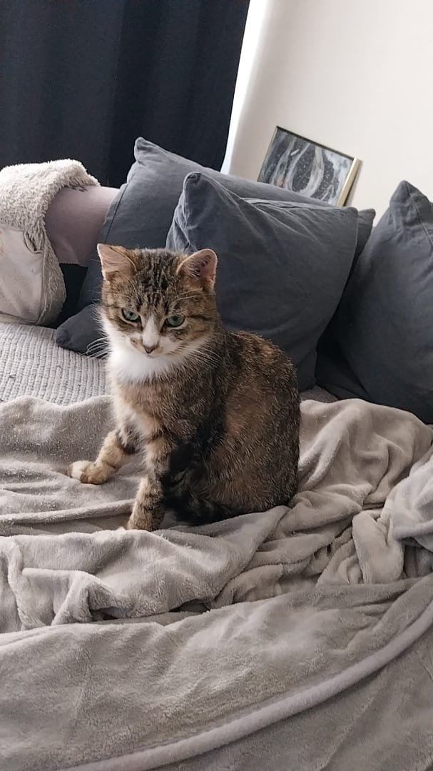 Madame är infångad på soptippen där det fanns många katter.  Vi trodde det var en hona varav namnet Madame.