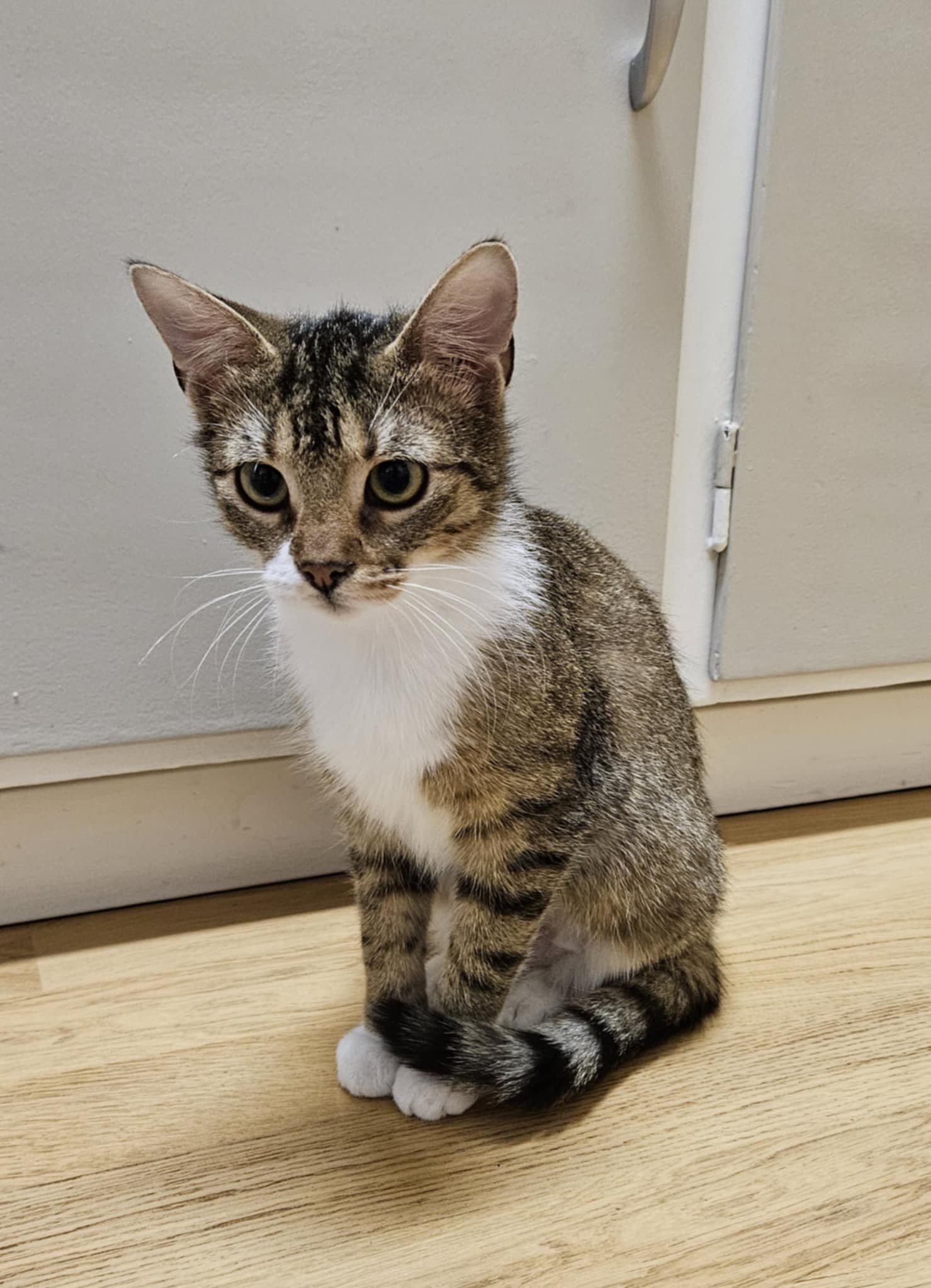 Malin är en pigg, lekfull o sällskaplig kisse. Hon kryper gärna upp i knät när stödmatte sitter där. Gillar o bli klappad. Hon springer runt med leksaksmöss i munnen. Hon är en liten tjej. Rumsren. Vill gärna ha tillgång till o kunna gå ut på inätad uteplats eller en säker uteplats utan trafik. Vill flytta med kompisen Skrållan. Van vid barn.