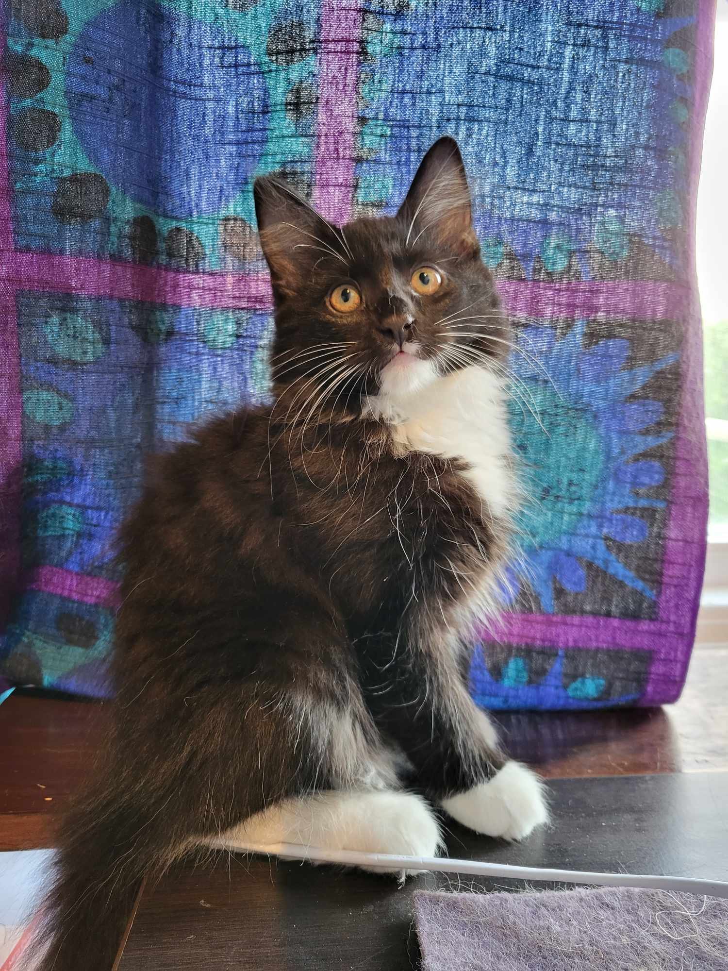 Pytt är en av fyra kattungar infångade utanför Nybro tillsammans med deras mamma. Pytt är en lekfull och sprallig semilånghårig tjej som skulle behöva ett hem med en snäll kattkompis hon kan lära sig av.