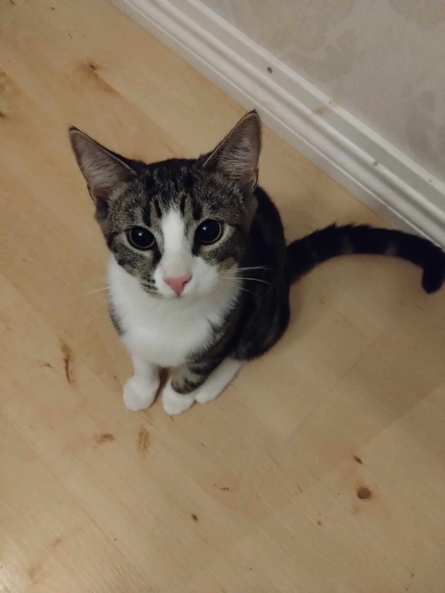 Här är Rigel. Rigels mamma blev ihjälkörd när han var liten så han har haft en tuff start i livet. Nu är han en tuff och busig kille som älskar att leka. Han älskar andra katter men är fortfarande lite blyg för människor.