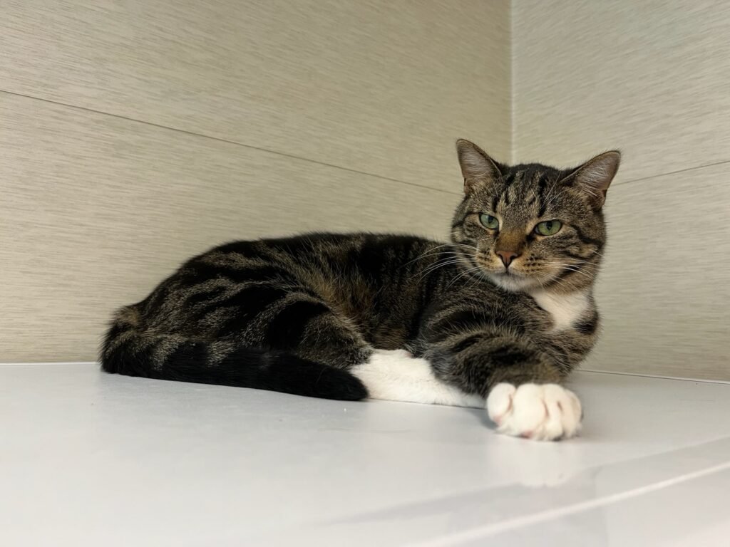 Rissla är en tandlös underbar katt. Tar hand om de yngre katterna i stödhemmet. Rissla är en i gänget o gillar busig och lek. Han har stora ögon och är jätte snäll. Dock tycker han fortfarande att stödhemsmattes händer är lite otäcka. Dock ligger han gärna bredvid stödhemsmatte och husse. Är rumsren. Behöver en kattkompis då han kommer så bra överens med stödhemmets katter.