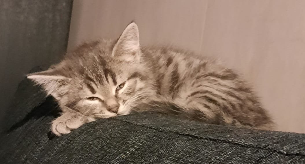 En pigg o nyfiken tjej som älskar lek o bus. En tam o gosig liten tjej. Vill ha ett hem med en kompis. Van vid andra katter o äldre barn.