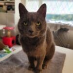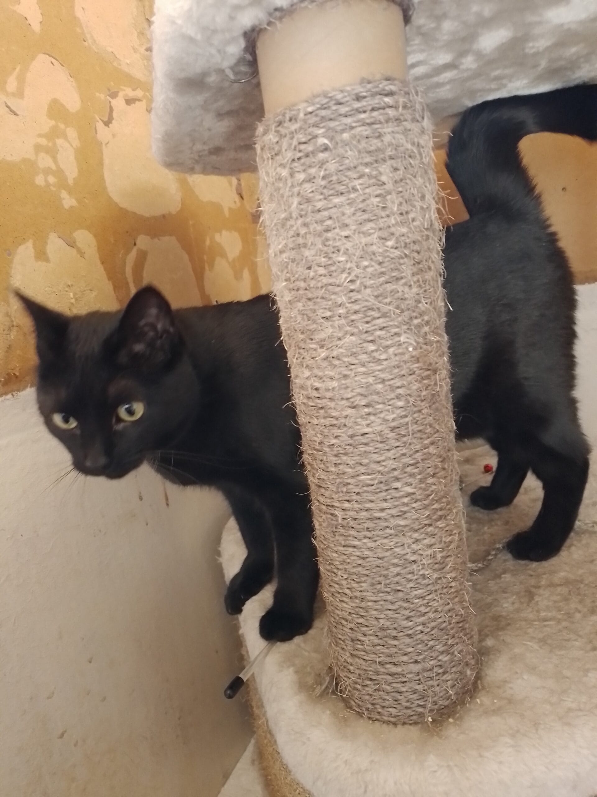Hon är full i bus och fart, älskar att leka men är också gosig och en snäll katt.