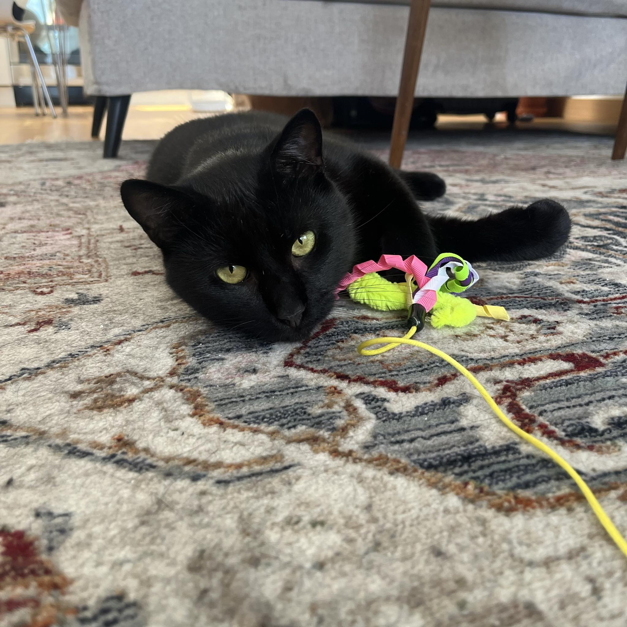 Idag är han en energisk buse som älskar o leka. Han älskar att gosa och tvättar gärna stödmattes hand, men han är dock på sin vakt. Är det några hastiga rörelse så kan han gömma sig, men kommer fram direkt efter, när nyfikenheten tar över.